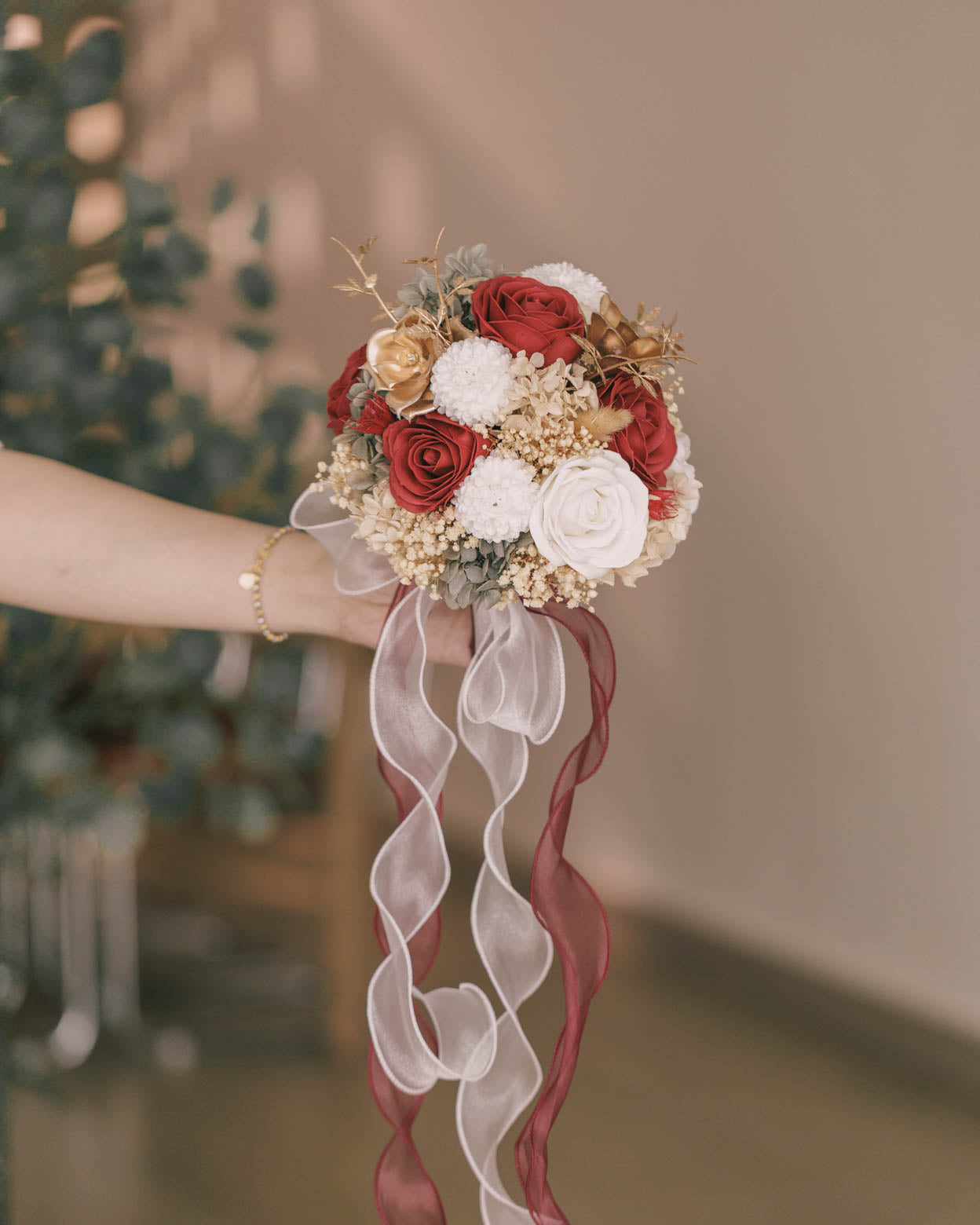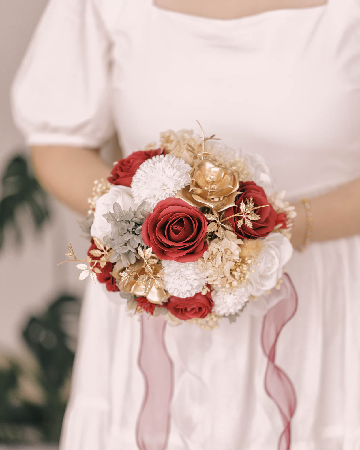Enhance your wedding day with the exquisite allure of floral elegance from KWR Florist. Elevate your ceremony with our stunning array of wedding flowers, crafted to complement every style and color palette. Whether you seek timeless romance or contemporary sophistication, our collection Soap, Dry artistic artificial arrangements, and preserved bouquets designed to capture the essence of your special day. Make your entrance unforgettable with KWR Florist's bespoke wedding floral arrangements tailored to match your unique wedding theme.