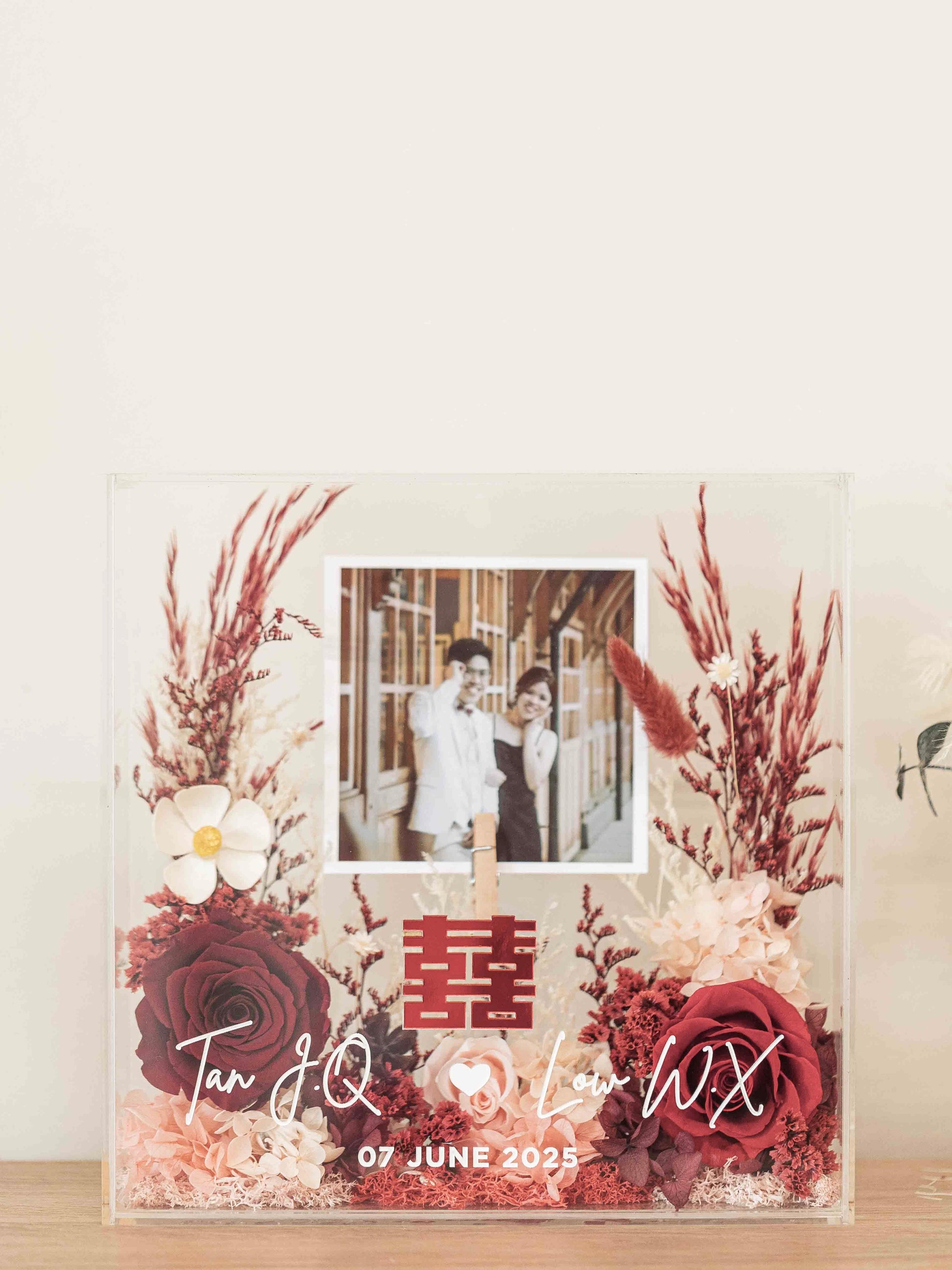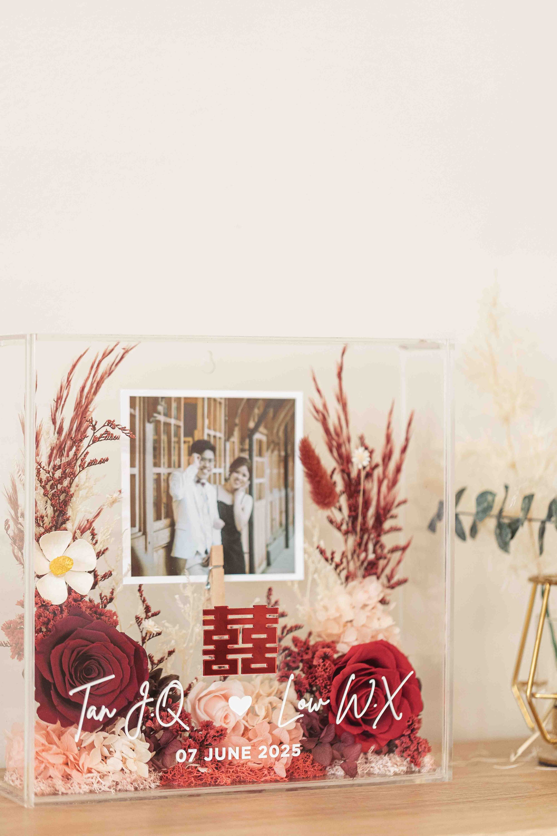 Preserved Flower Display: The focal point of our frame is the exquisite arrangement of preserved flowers, adding a touch of natural beauty and elegance to your displayed memories.