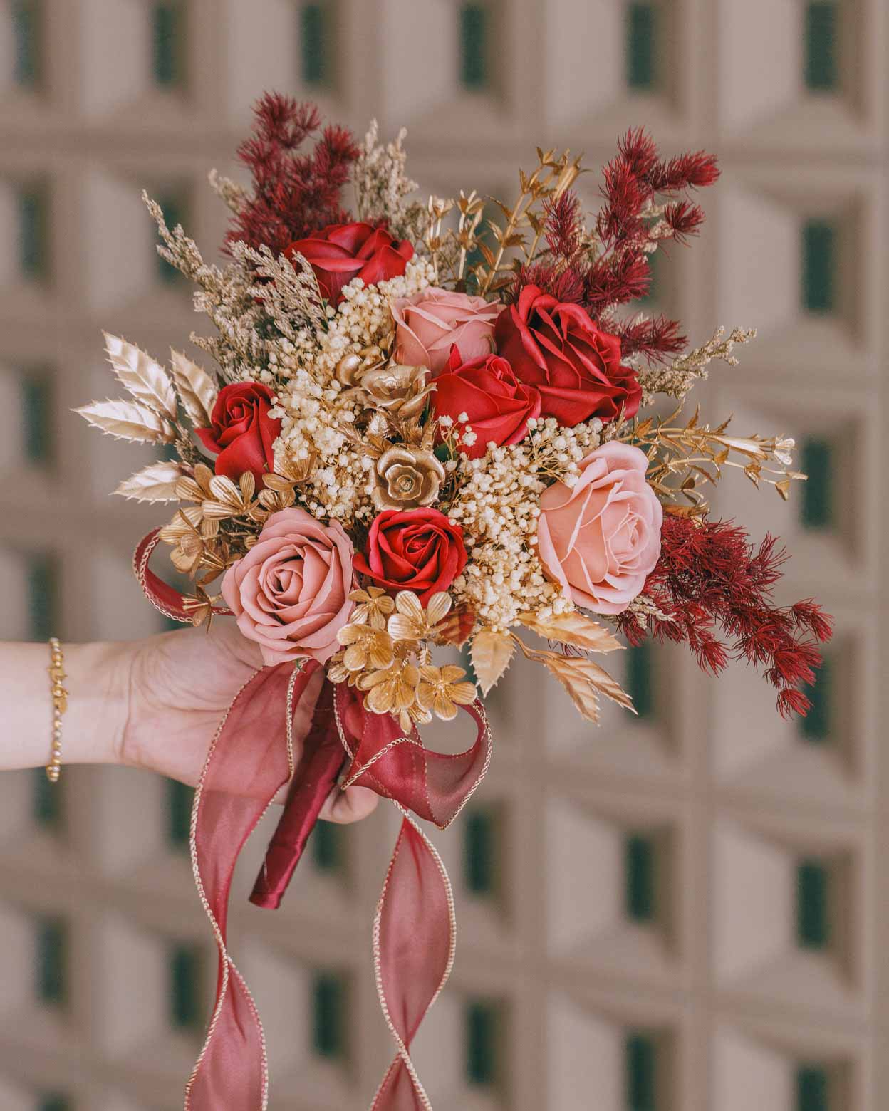 Enhance your wedding day with the exquisite allure of floral elegance from KWR Florist. Elevate your ceremony with our stunning array of wedding flowers, crafted to complement every style and color palette. Whether you seek timeless romance or contemporary sophistication, our collection Soap, Dry artistic artificial arrangements, and preserved bouquets designed to capture the essence of your special day. Make your entrance unforgettable with KWR Florist's bespoke wedding floral arrangements tailored to match your unique wedding theme.
