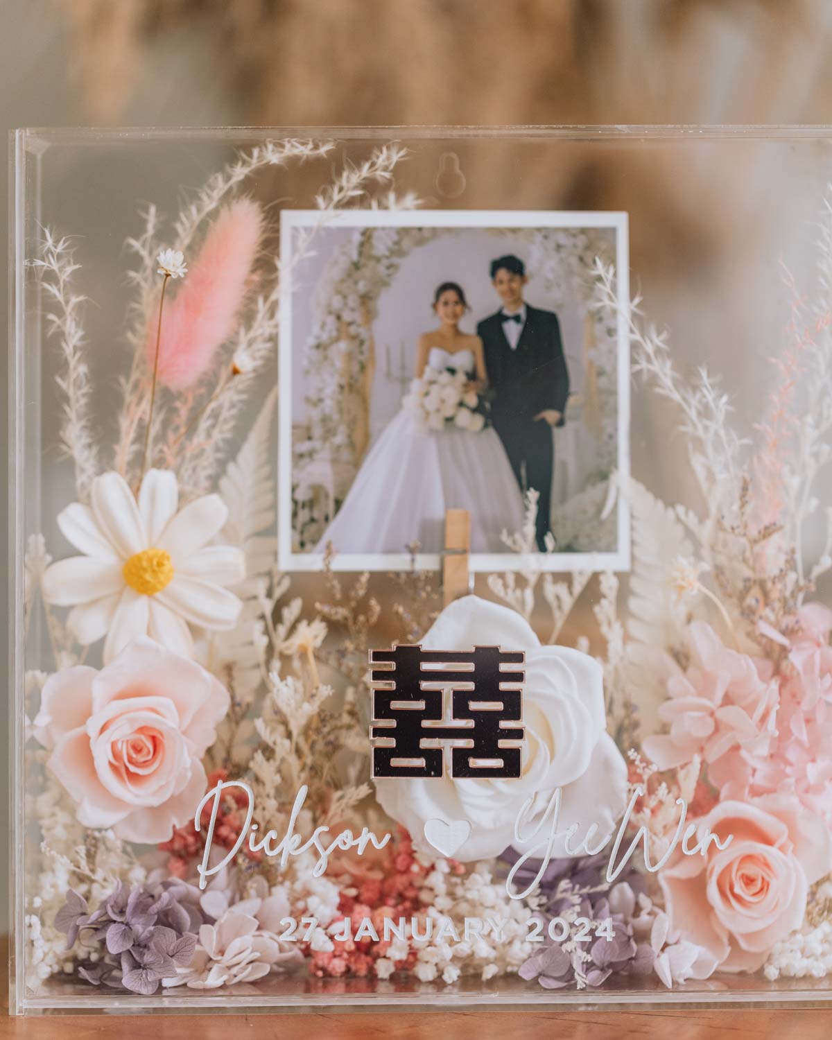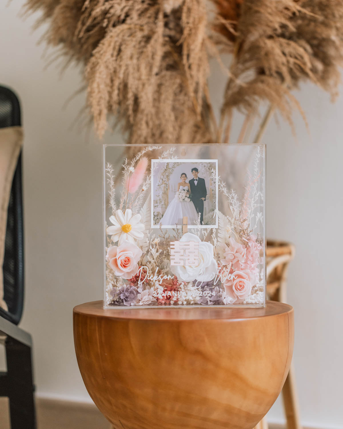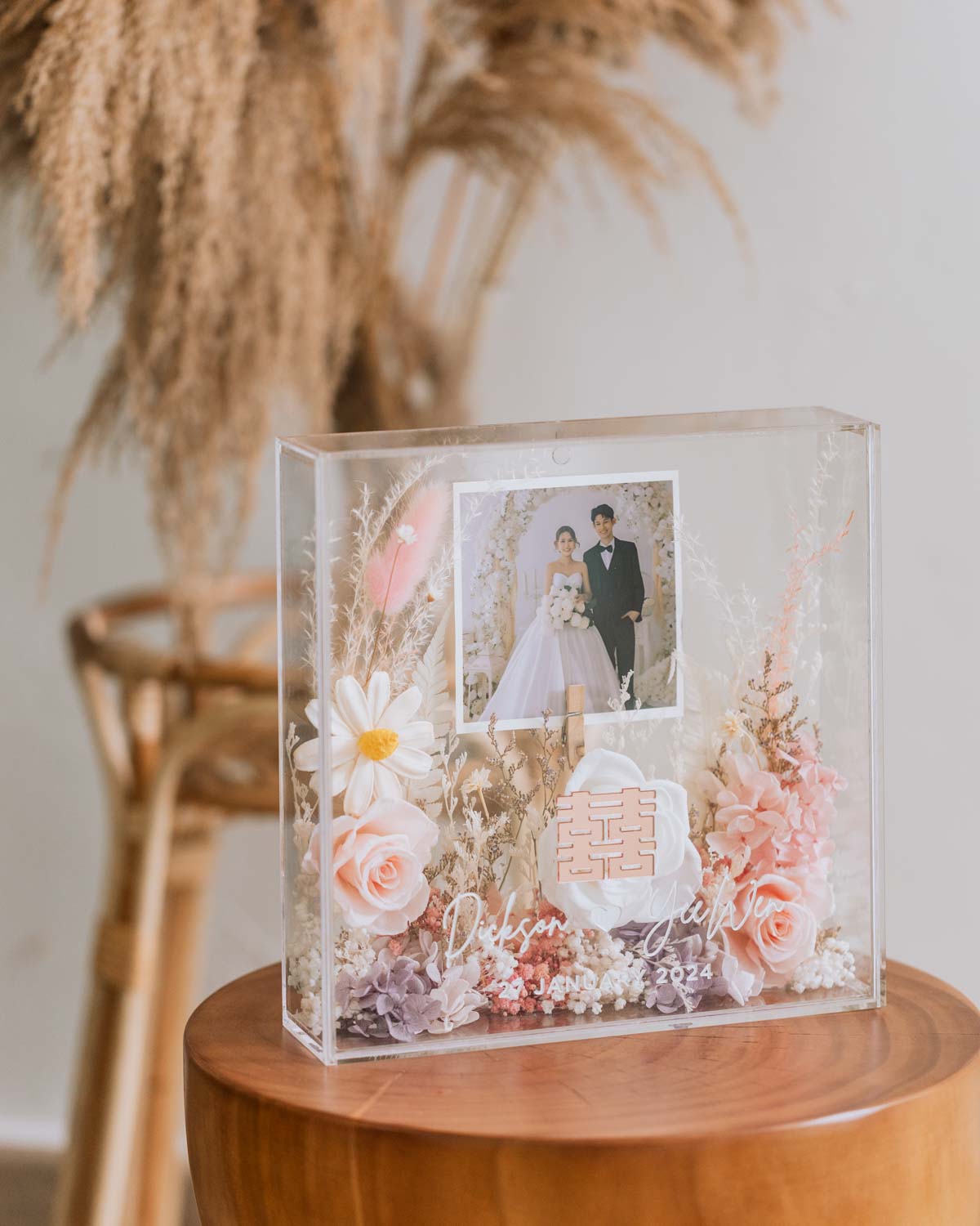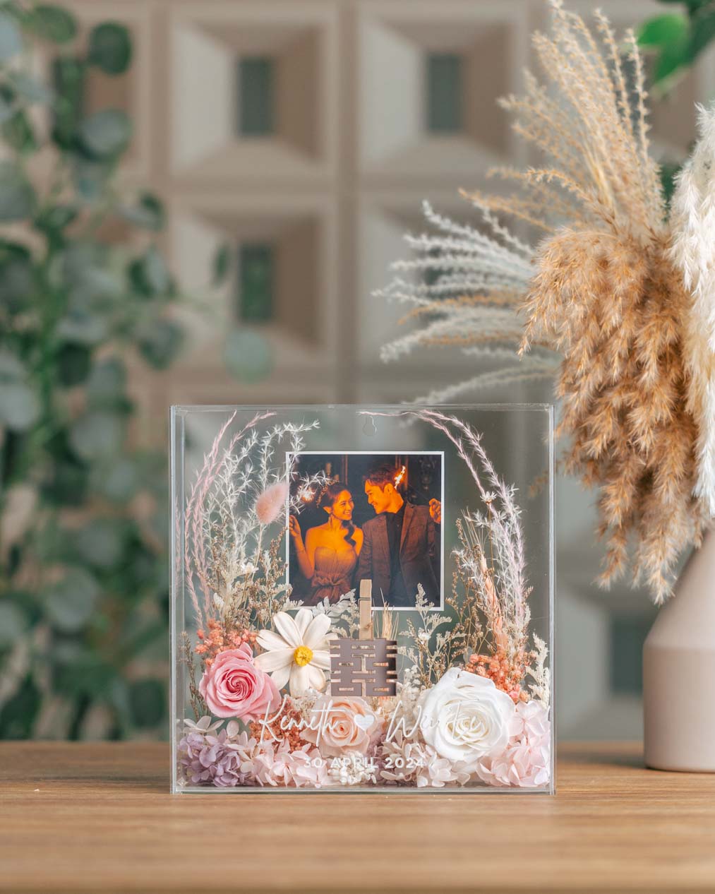 Preserved Flower Display: The focal point of our frame is the exquisite arrangement of preserved flowers, adding a touch of natural beauty and elegance to your displayed memories.