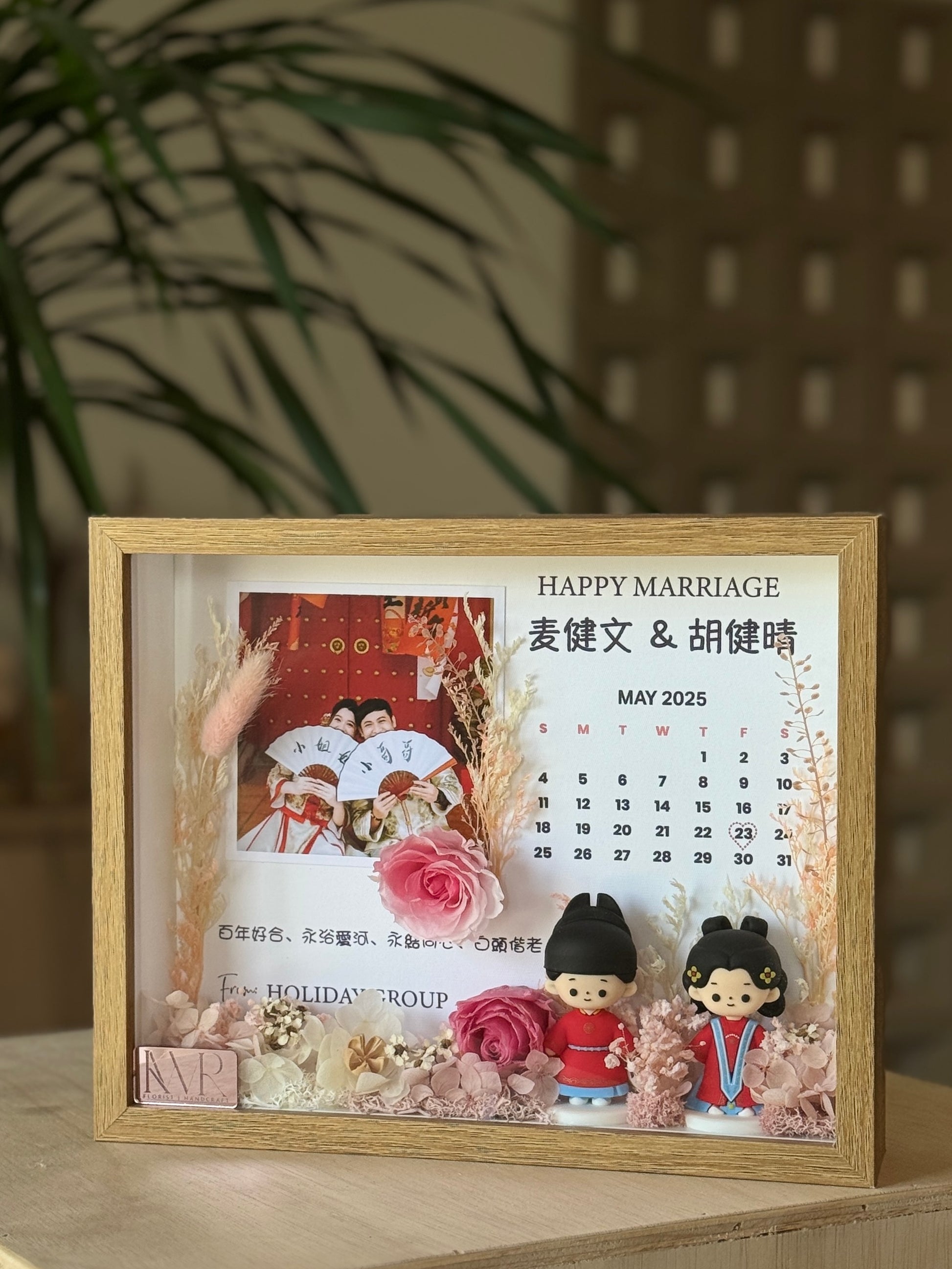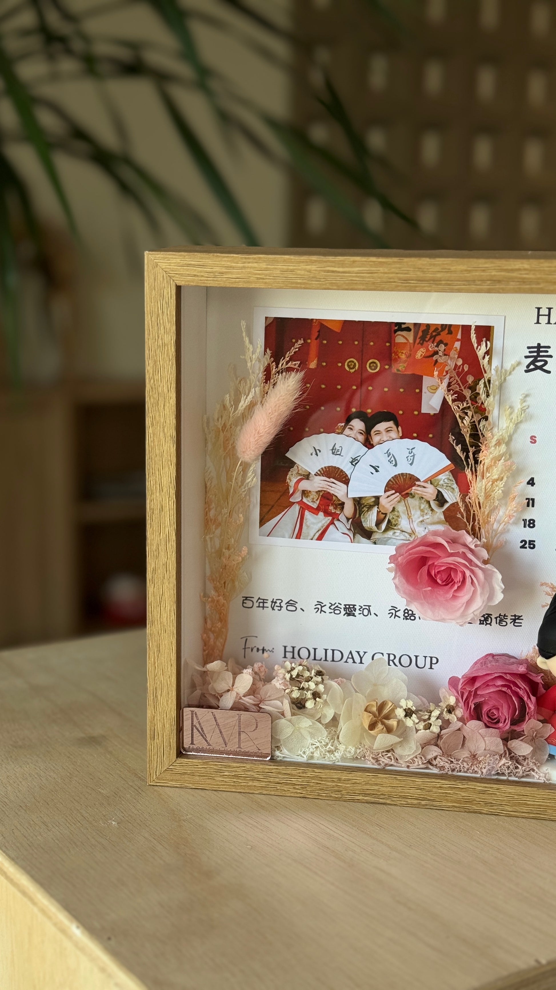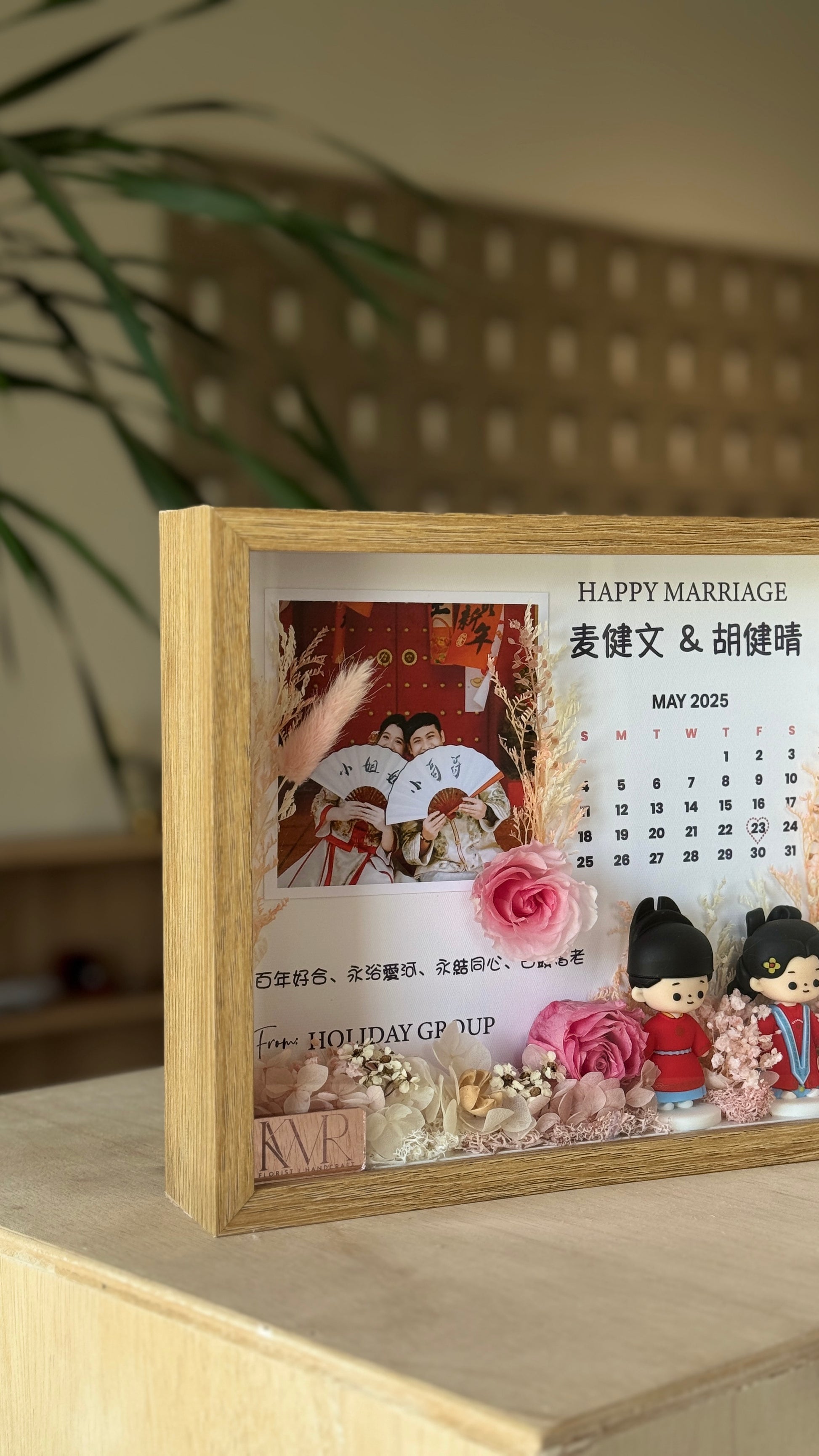 The Flora Memoire wooden frame combines elegant craftsmanship with practical design, making it an ideal choice for commemorating weddings. Crafted from high-quality wood, this frame features a built-in calendar to mark special dates, blending functionality with timeless style. Its refined finish and sturdy construction ensure it will beautifully preserve your cherished memories for years to come. Perfect for displaying wedding photos while keeping important anniversaries in view, the Flora Memoire frame offers both sentimental value and expert design.