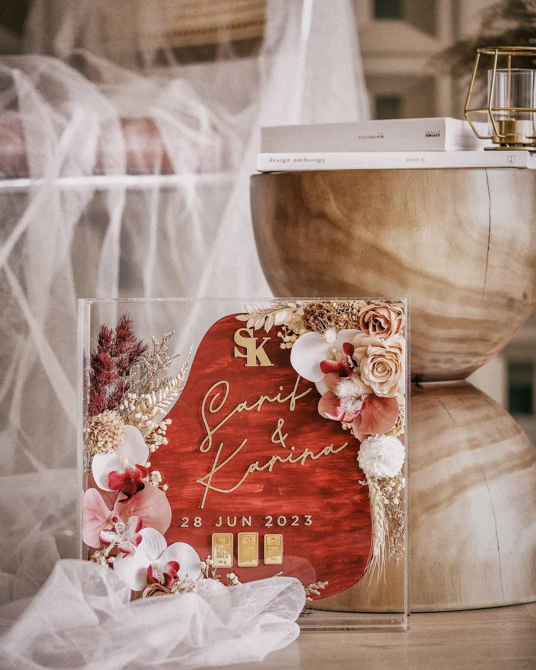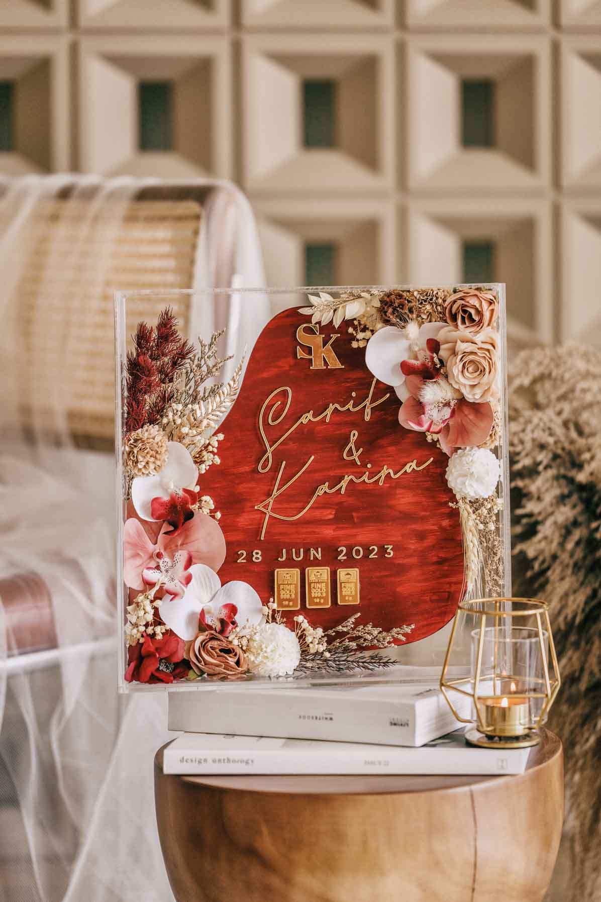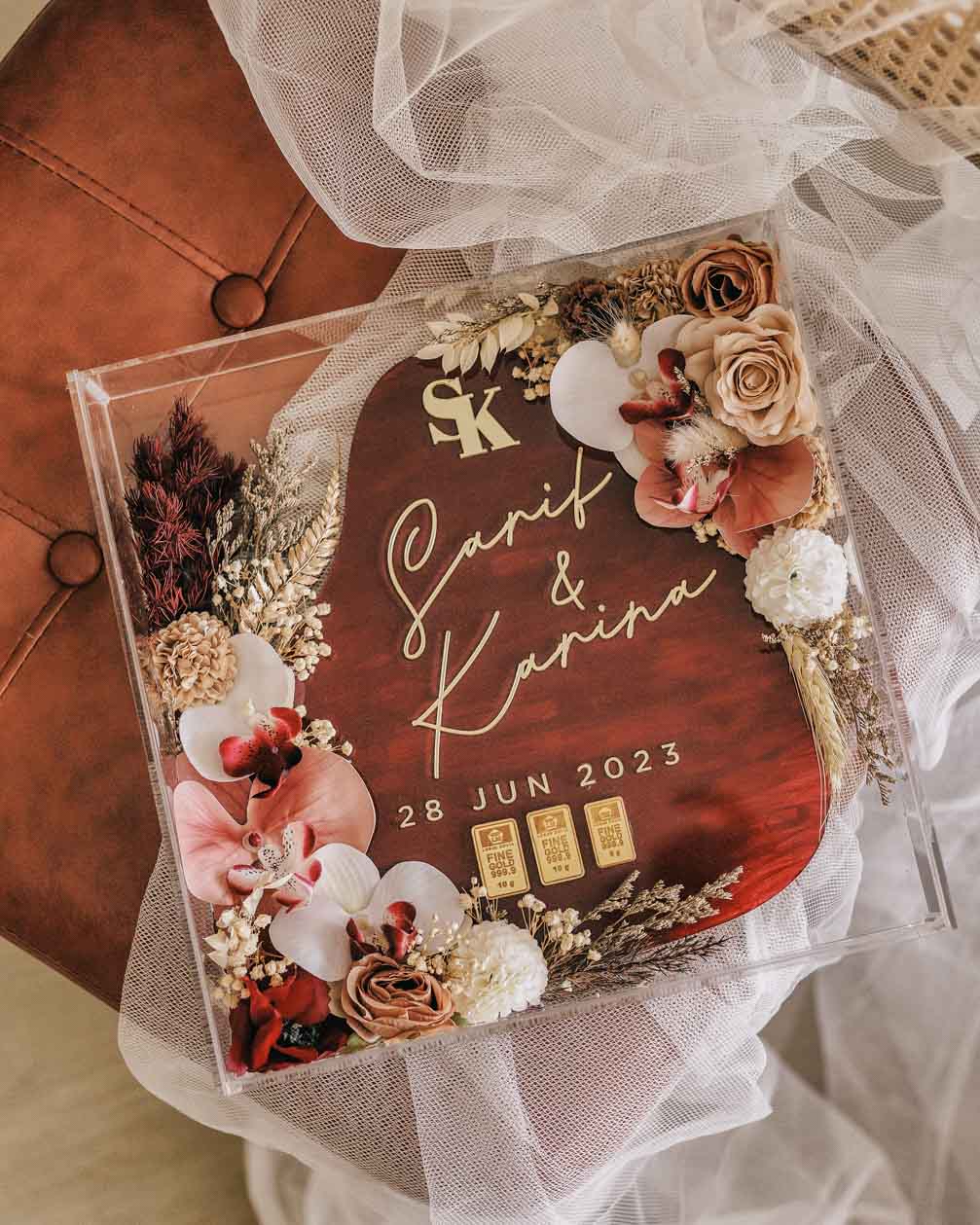 Frame Mas Kahwin Classic Ruby Red Gold 3D frame