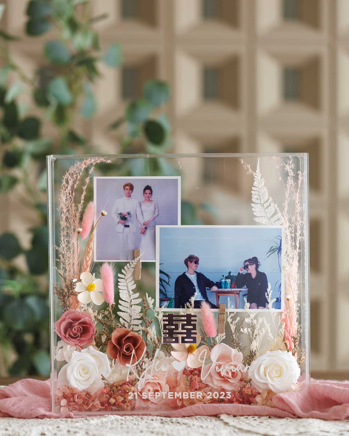 Preserved Flower Display: The focal point of our frame is the exquisite arrangement of preserved flowers, adding a touch of natural beauty and elegance to your displayed memories.