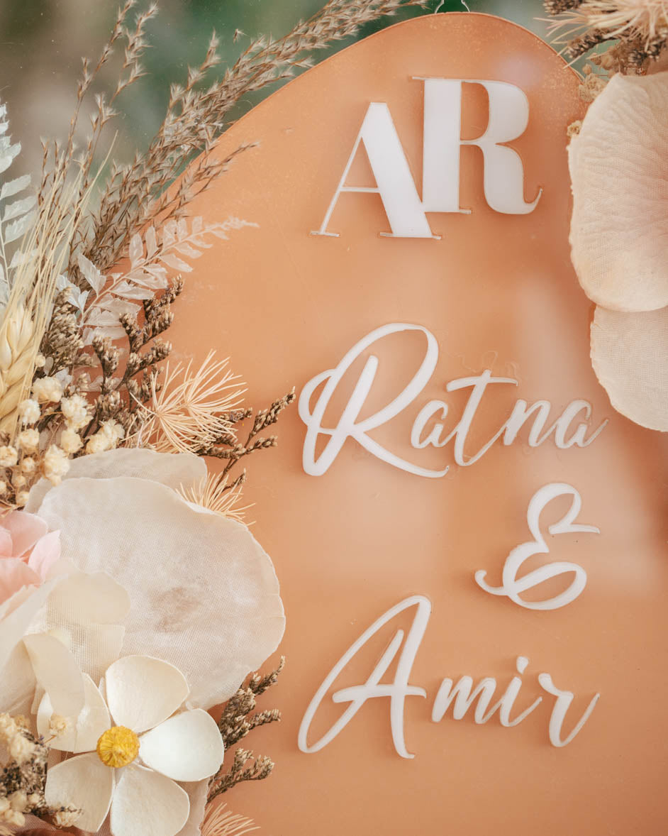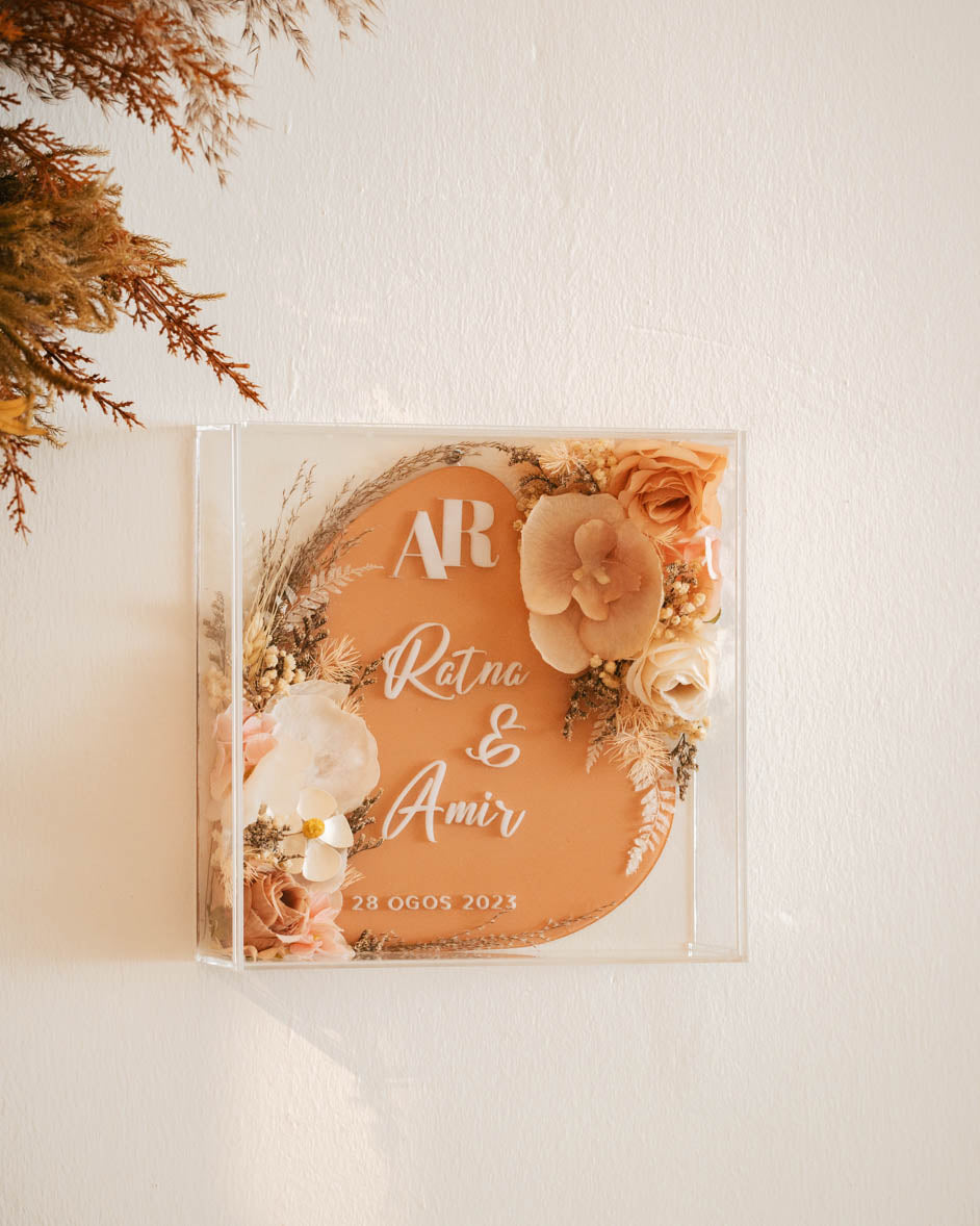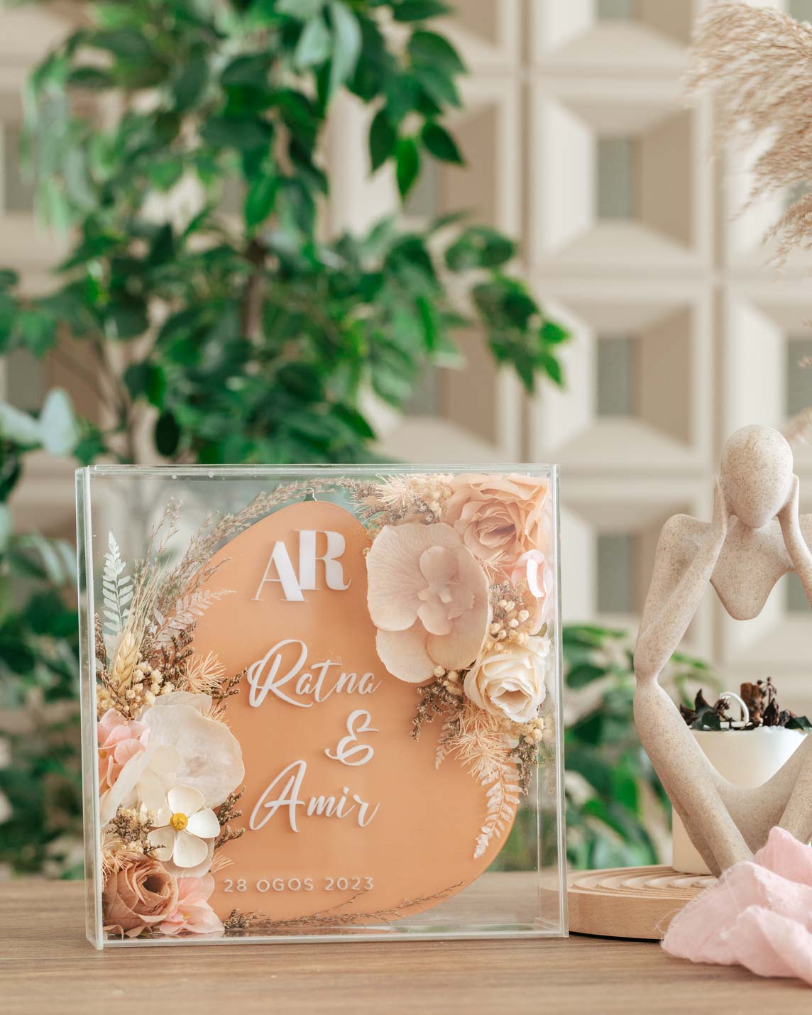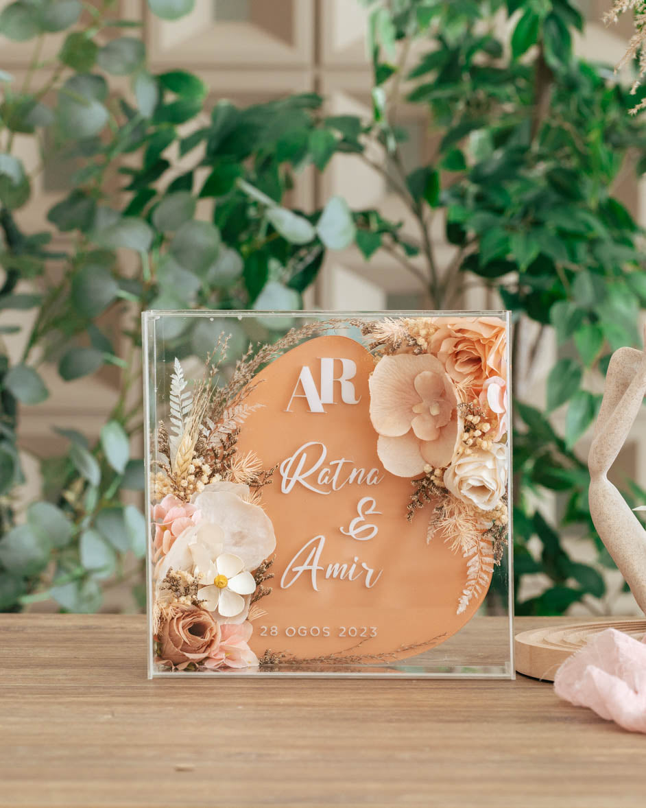 Capture the essence of romance with our elegant clear acrylic square frame, showcasing the wedding name in a soft peach color complemented by delicate pink floral accents. Perfect for adding a touch of sophistication to any wedding decor, this timeless piece serves as a beautiful memento of the couple's special day. Order now to elevate your wedding decor with a touch of refined elegance!