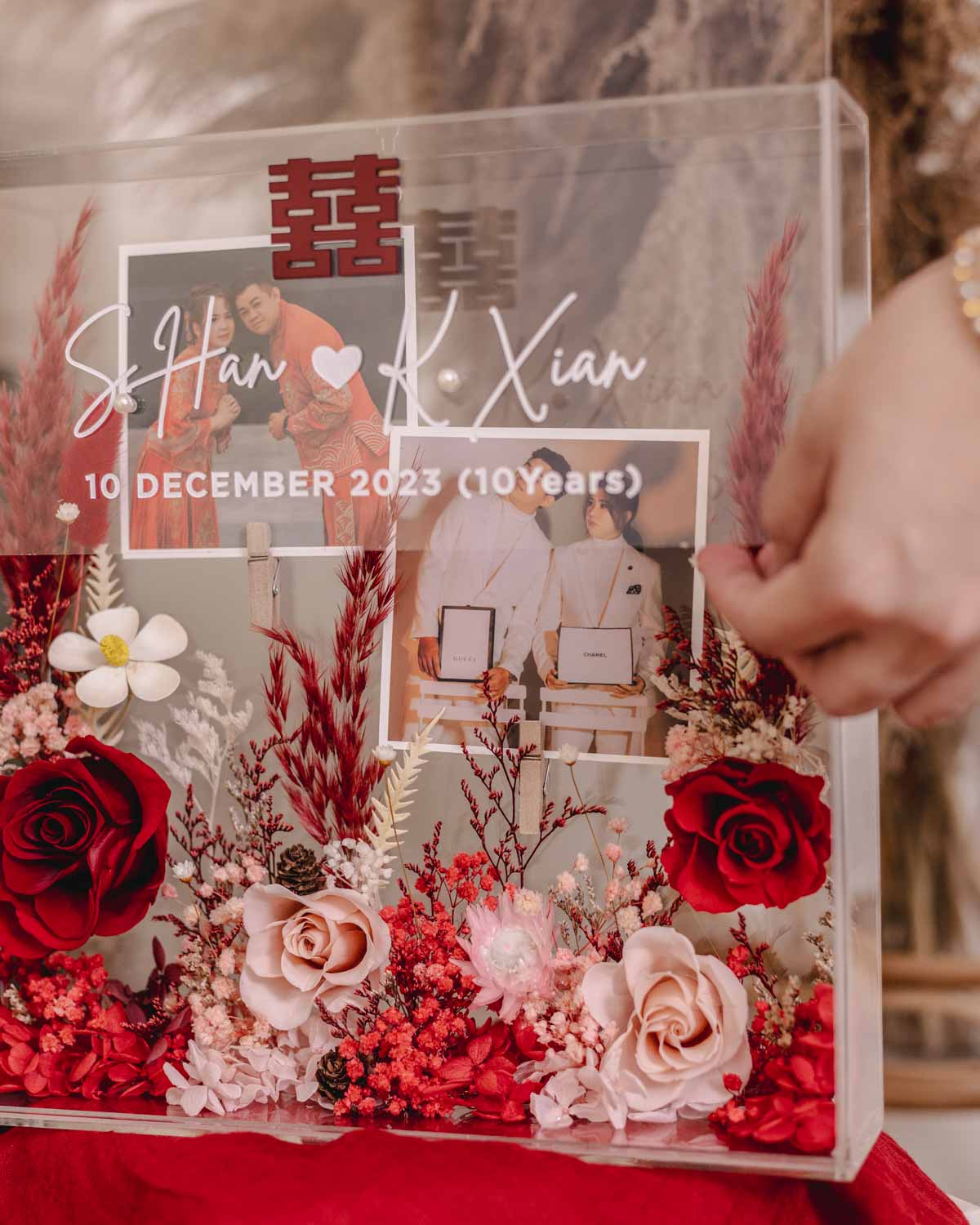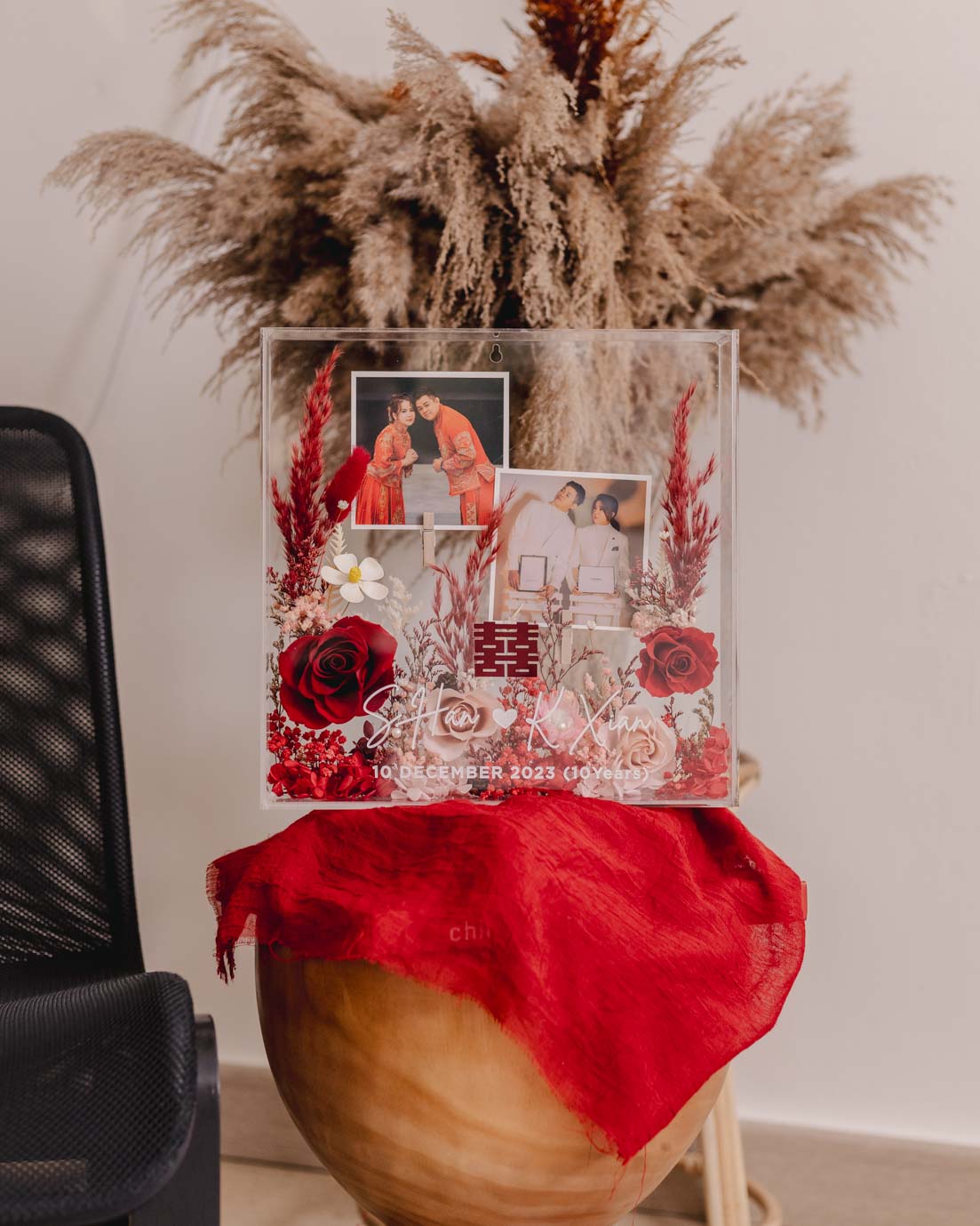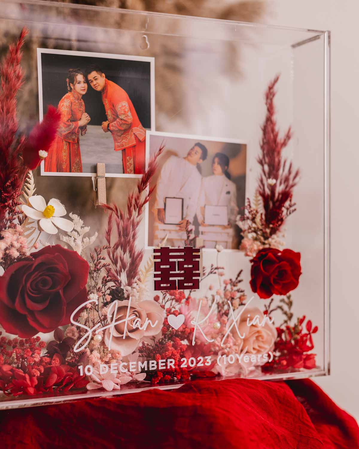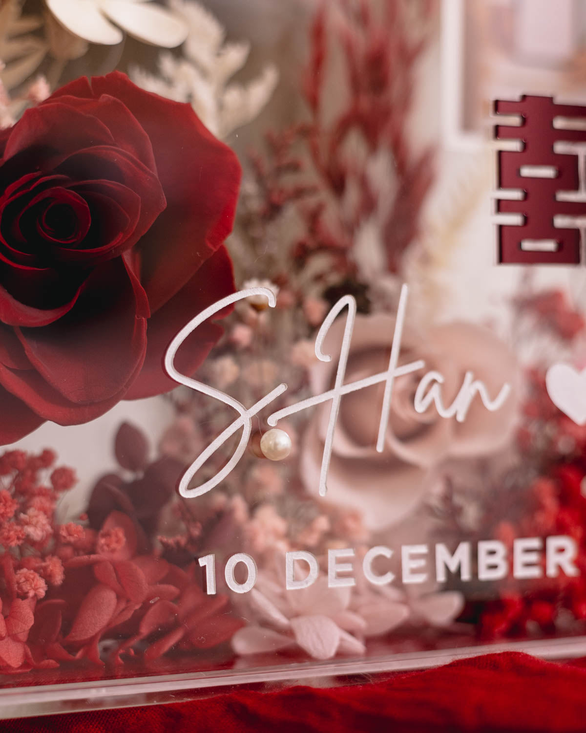 Preserved Flower Display: The focal point of our frame is the exquisite arrangement of preserved flowers, adding a touch of natural beauty and elegance to your displayed memories.