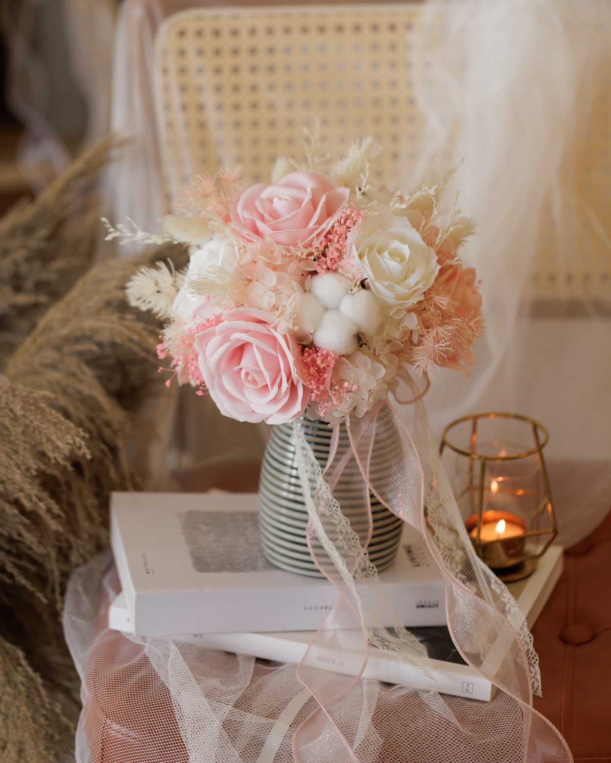 Enhance your wedding day with the exquisite allure of floral elegance from KWR Florist. Elevate your ceremony with our stunning array of wedding flowers, crafted to complement every style and color palette. Whether you seek timeless romance or contemporary sophistication, our collection Soap, Dry artistic artificial arrangements, and preserved bouquets designed to capture the essence of your special day. Make your entrance unforgettable with KWR Florist's bespoke wedding floral arrangements tailored to match your unique wedding theme.