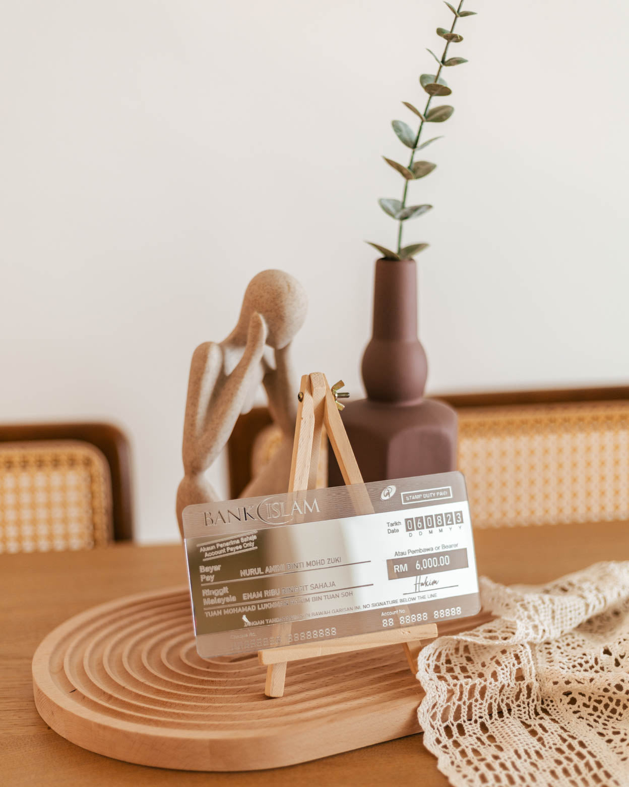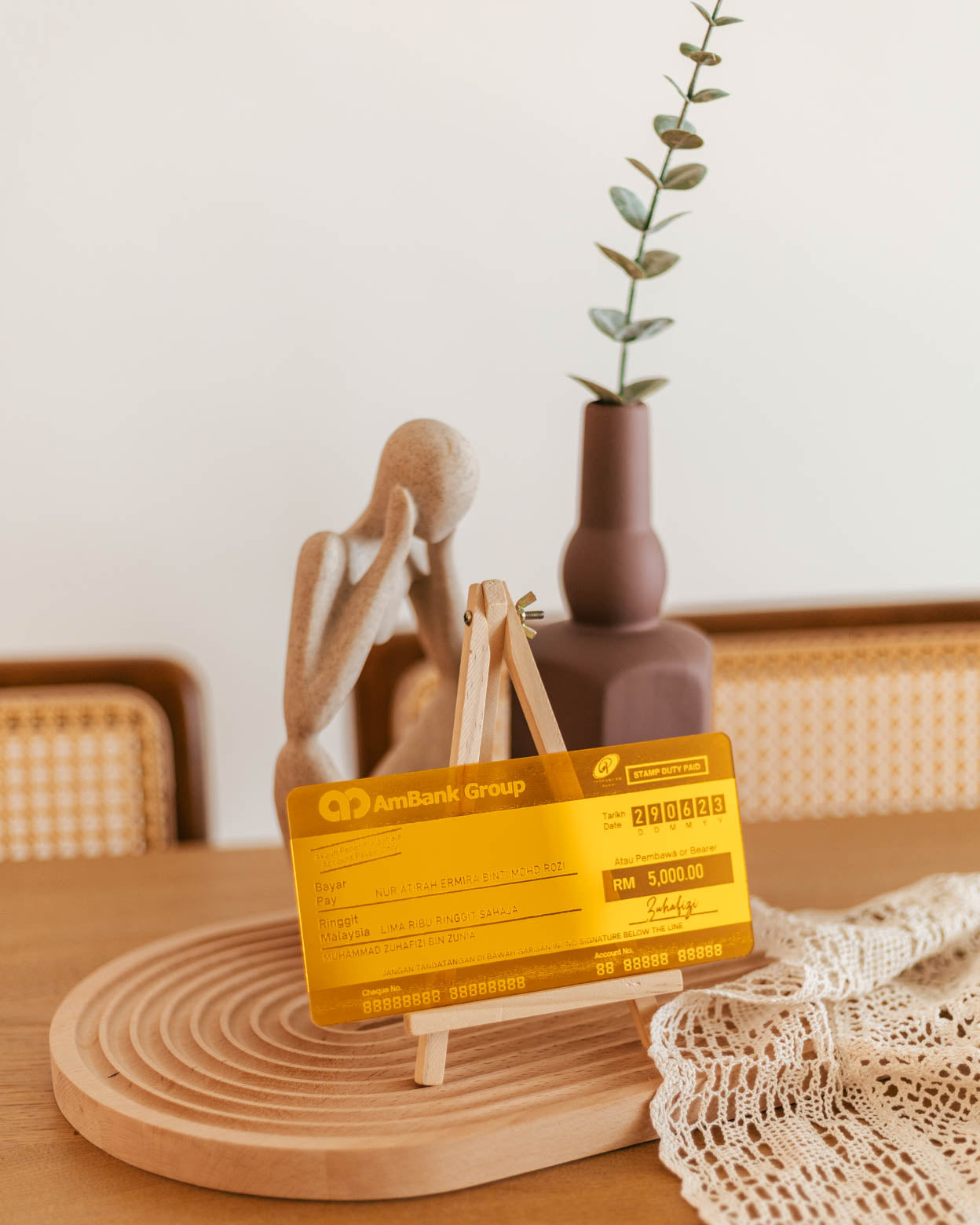 Optimize your wedding celebration with our exquisite mock-up cheques. Customize your design, capture beautiful photos, and honor the cultural significance of this symbolic gesture. Order now and make your wedding day even more memorable.