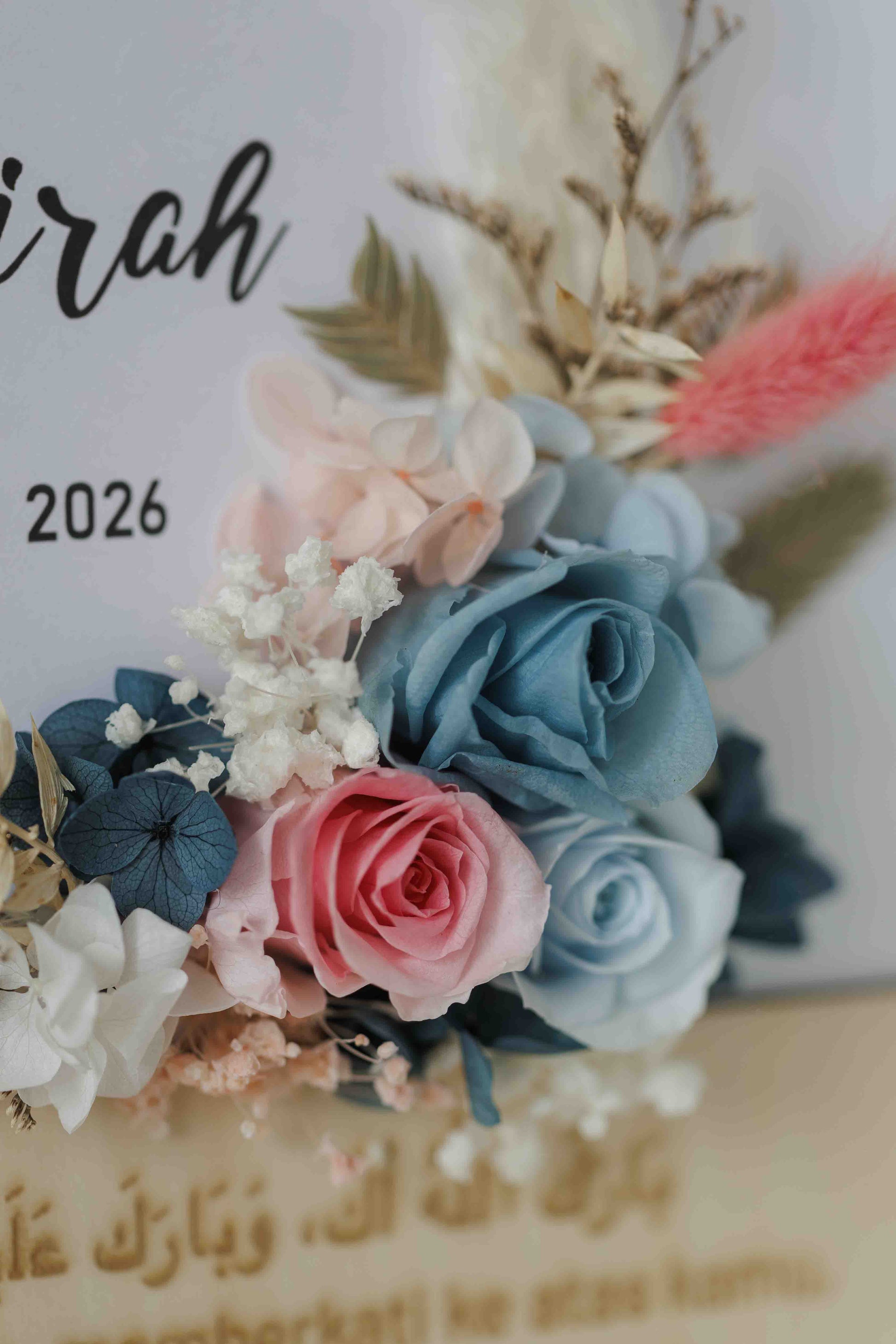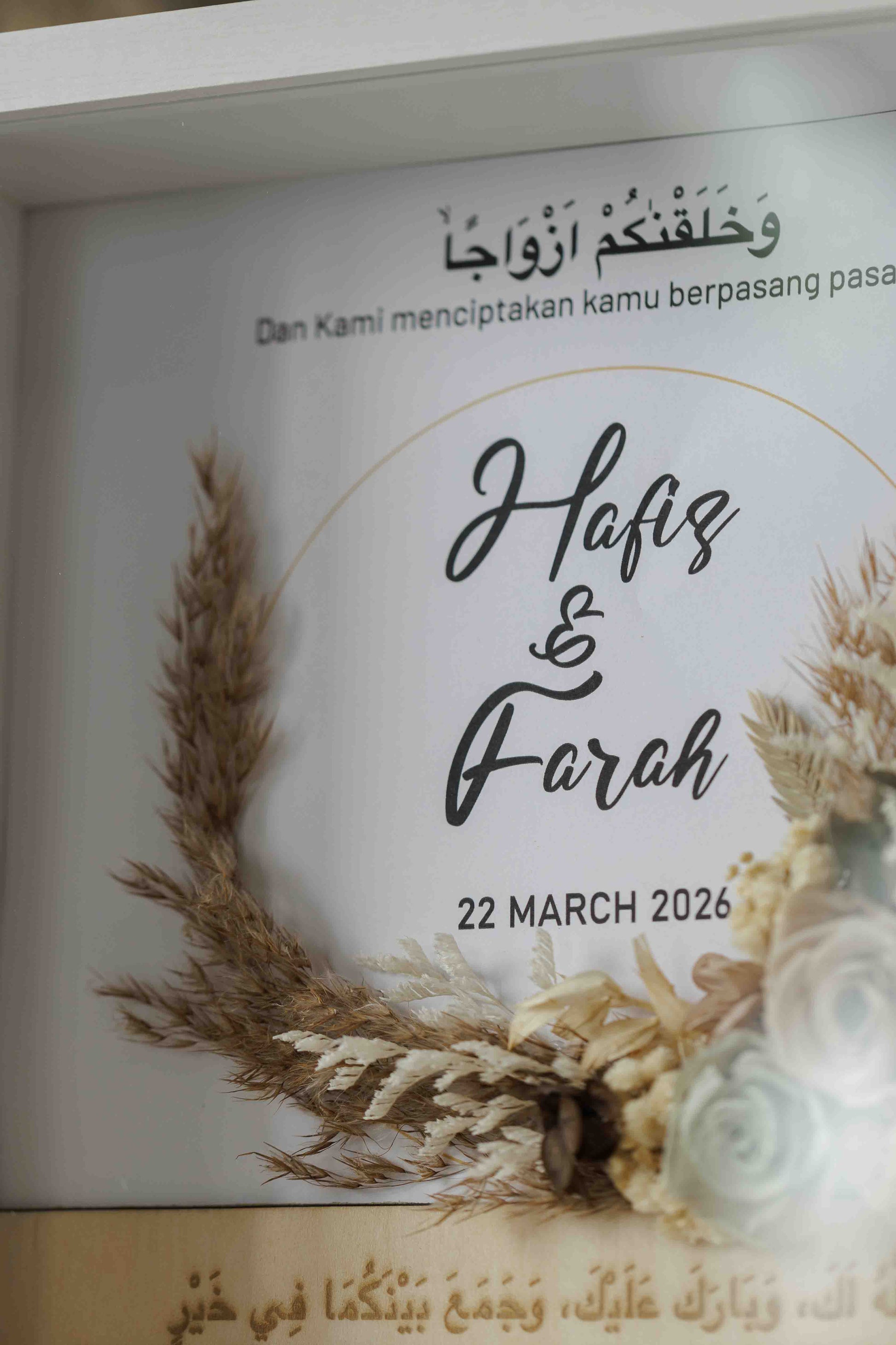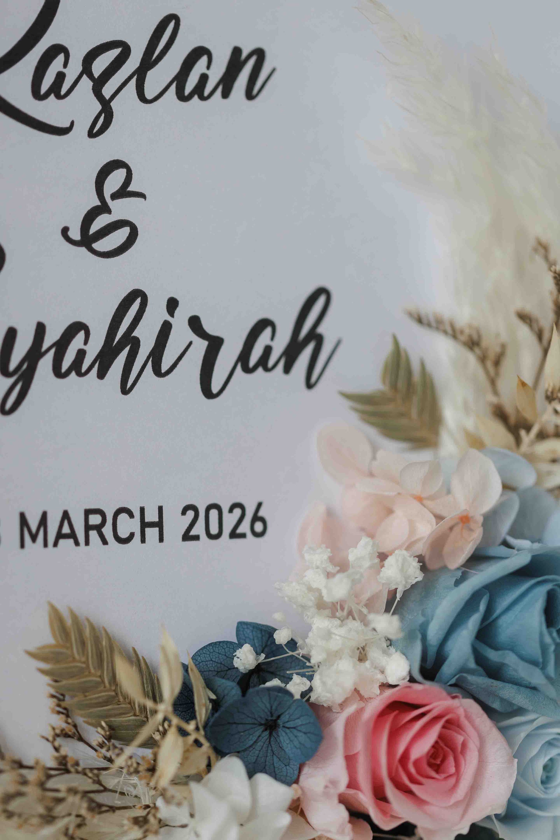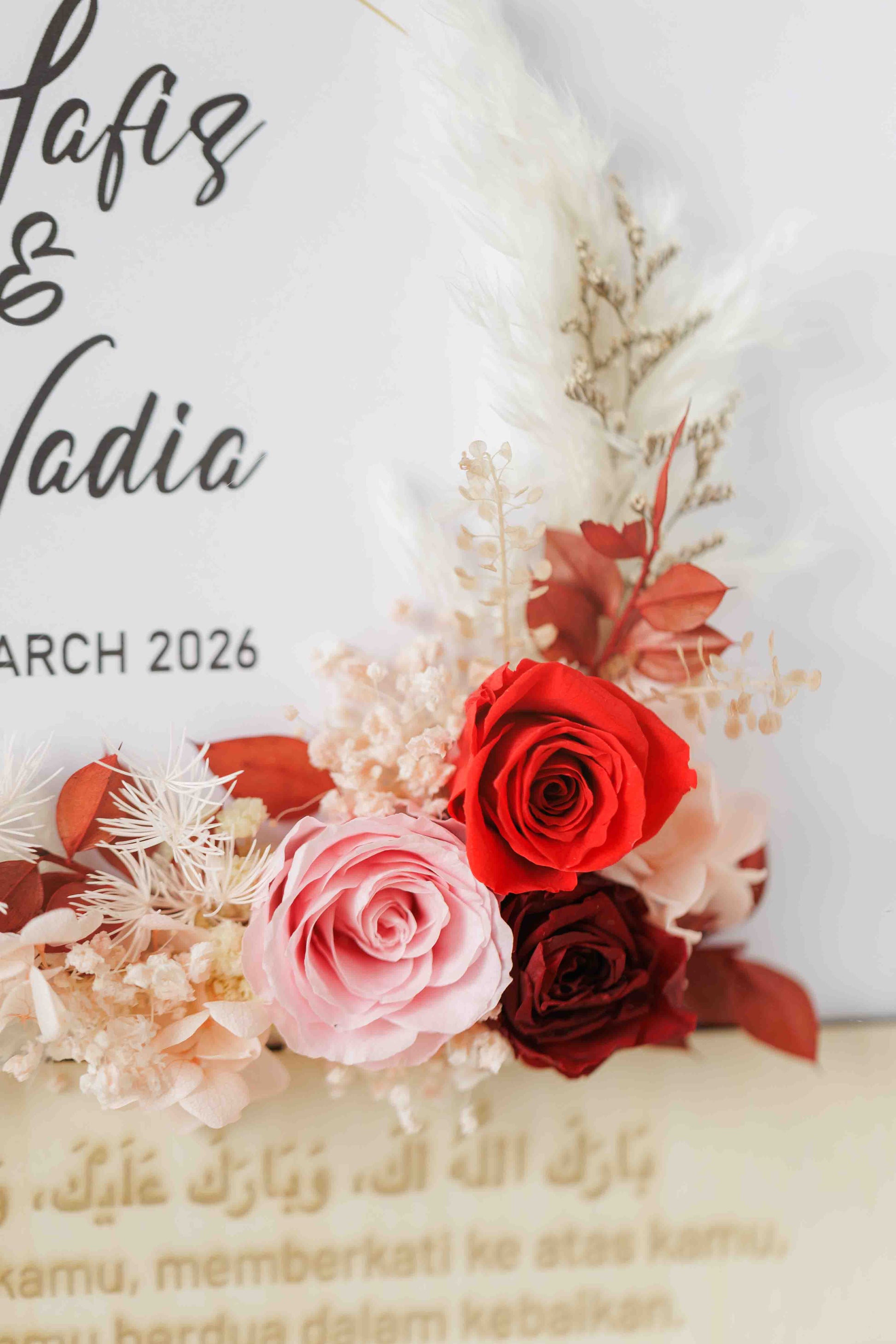 • Personalised couple’s names displayed beneath the calligraphy