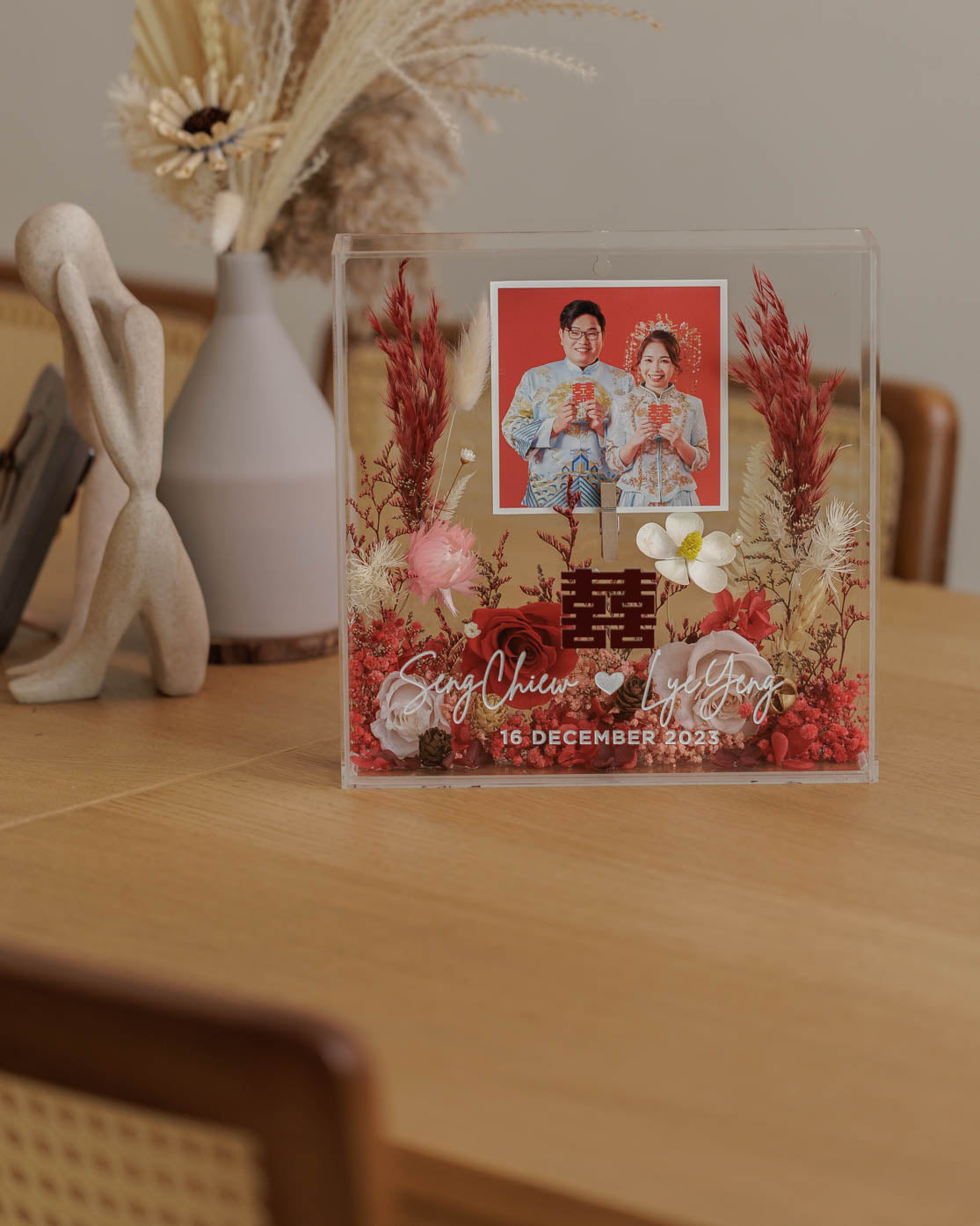 Preserved Flower Display: The focal point of our frame is the exquisite arrangement of preserved flowers, adding a touch of natural beauty and elegance to your displayed memories.