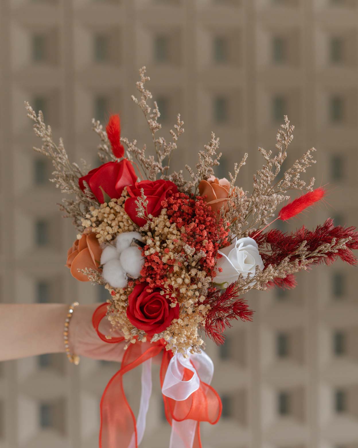 Enhance your wedding day with the exquisite allure of floral elegance from KWR Florist. Elevate your ceremony with our stunning array of wedding flowers, crafted to complement every style and color palette. Whether you seek timeless romance or contemporary sophistication, our collection Soap, Dry artistic artificial arrangements, and preserved bouquets designed to capture the essence of your special day. Make your entrance unforgettable with KWR Florist's bespoke wedding floral arrangements tailored to match your unique wedding theme.