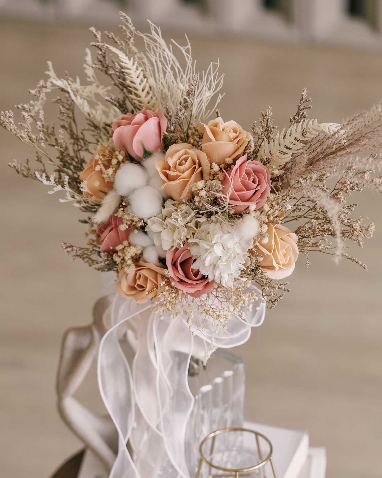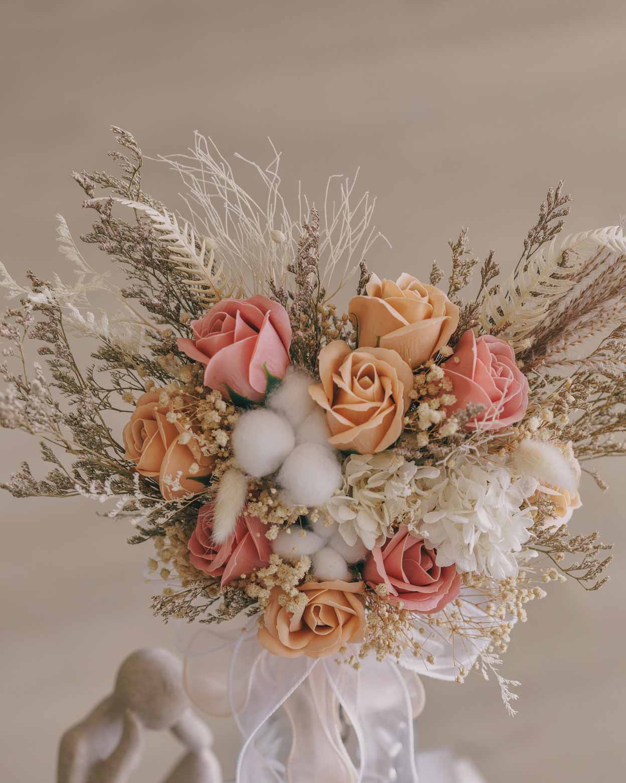 Enhance your wedding day with the exquisite allure of floral elegance from KWR Florist. Elevate your ceremony with our stunning array of wedding flowers, crafted to complement every style and color palette. Whether you seek timeless romance or contemporary sophistication, our collection Soap, Dry artistic artificial arrangements, and preserved bouquets designed to capture the essence of your special day. Make your entrance unforgettable with KWR Florist's bespoke wedding floral arrangements tailored to match your unique wedding theme.