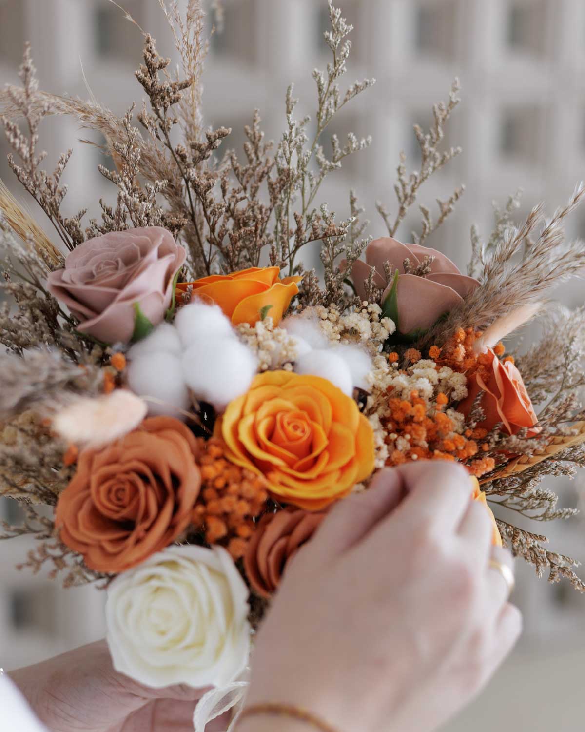 Enhance your wedding day with the exquisite allure of floral elegance from KWR Florist. Elevate your ceremony with our stunning array of wedding flowers, crafted to complement every style and color palette. Whether you seek timeless romance or contemporary sophistication, our collection Soap, Dry artistic artificial arrangements, and preserved bouquets designed to capture the essence of your special day. Make your entrance unforgettable with KWR Florist's bespoke wedding floral arrangements tailored to match your unique wedding theme.