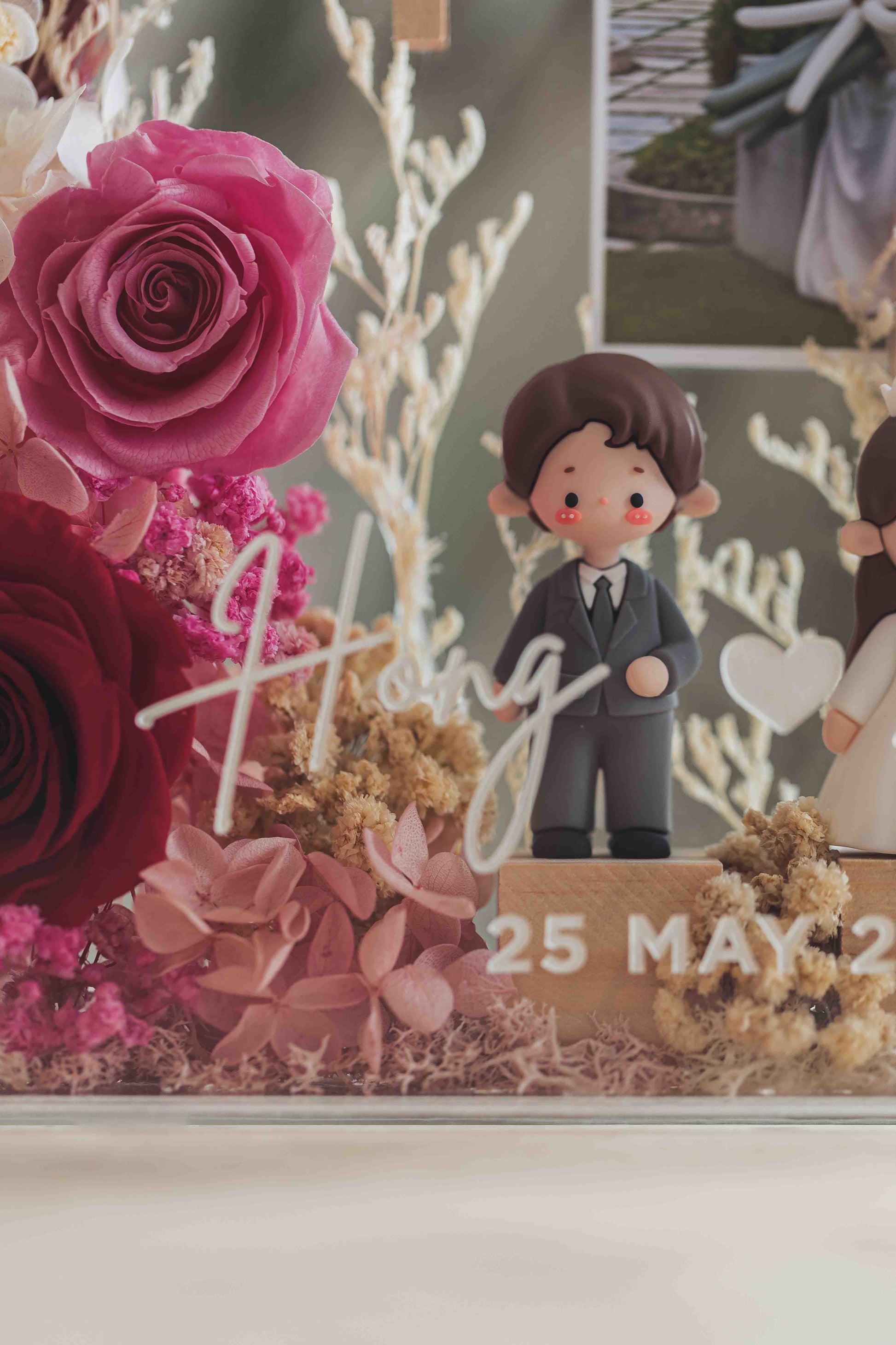 保鲜花展示:我们相框的焦点是保鲜花的精美排列,为您展示的回忆增添一丝自然的美丽和优雅。